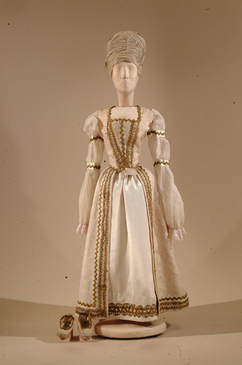 Costume per dama di foggia rinascimentale composto da veste, gonna e scarpe