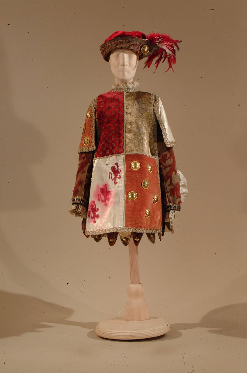 Costume per araldo di foggia rinascimentale composto da veste, sopravveste, scarpe e cintura