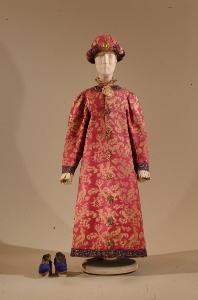 Costume per nobile di foggia rinascimentale composto da veste, scarpe e cappello