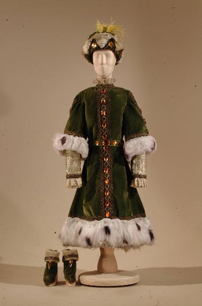 Costume per nobile di foggia rinascimentale composto da veste, scarpe, cintura e cappello