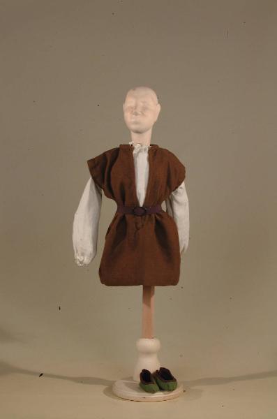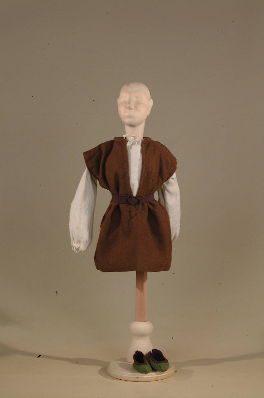 Costume di bambino popolano del '400 costituito da veste, camicia, cintura, scarpe