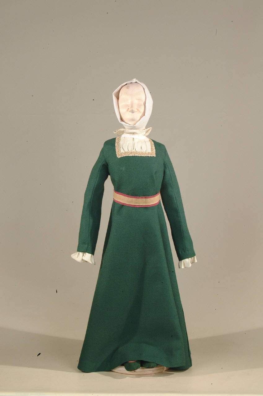 Costume di bambina popolana del '400 costituito da veste, cinture, scarpe, soggolo