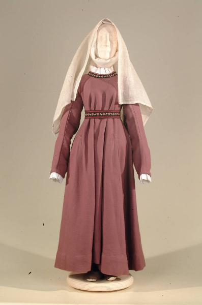 Costume per popolana del '400 costituito da veste, scarpe, cintura, velo, soggolo