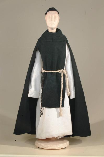 Costume di frate domenicano costituito da veste, pazienza, scapolare, zucchetto, cintura, rosario, mantello