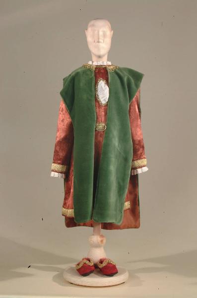 Costume di nobile del '400 costituito da veste, sopravveste, cintura, scarpe