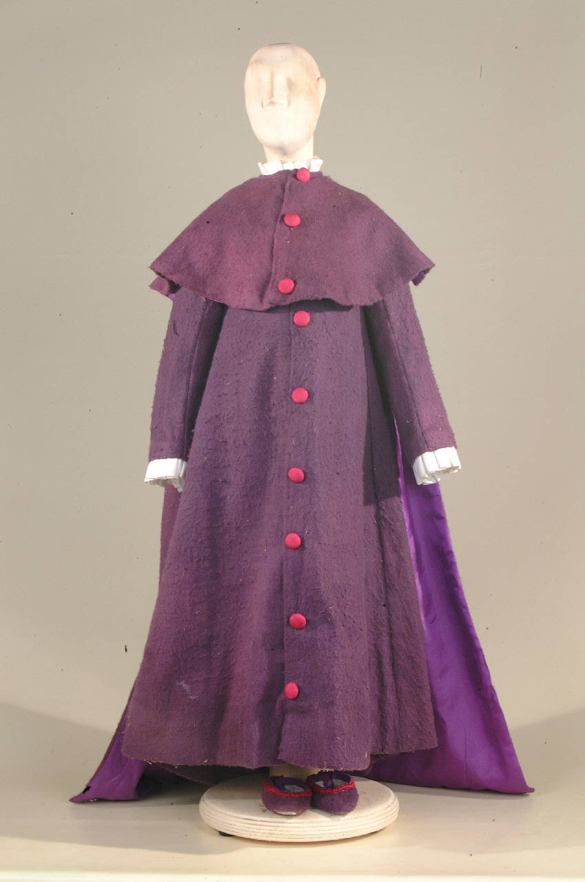 Costume di vescovo costituito da veste, mantello, scarpe, zucchetto, mantellina