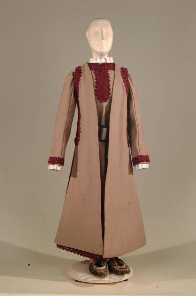 Costume borghese del '400 costituito da veste, sopravveste, cintura, scarpe