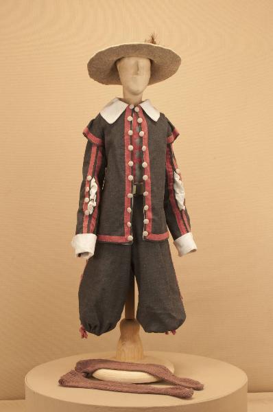 Costume da popolano di foggia seicentesca composto da pantaloni, giacca, gilet, cintura e calze. Si completa con cappello GOR 15386.
