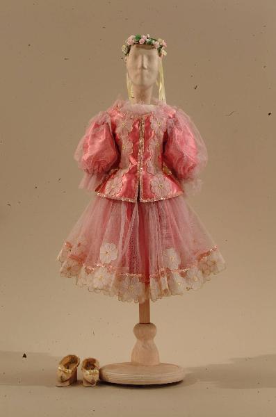 Costume per ballerina inserito in contesto del 1600 composto da gonna, corpino, diadema, scarpe