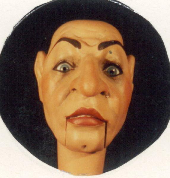 Corpo grande tagliato in vita a incastro; testa con bocca mobile e occhi fissi; mani mobili con dita separate; piedi fissi con piombatura; bilancino originale a croce metodo Holden
