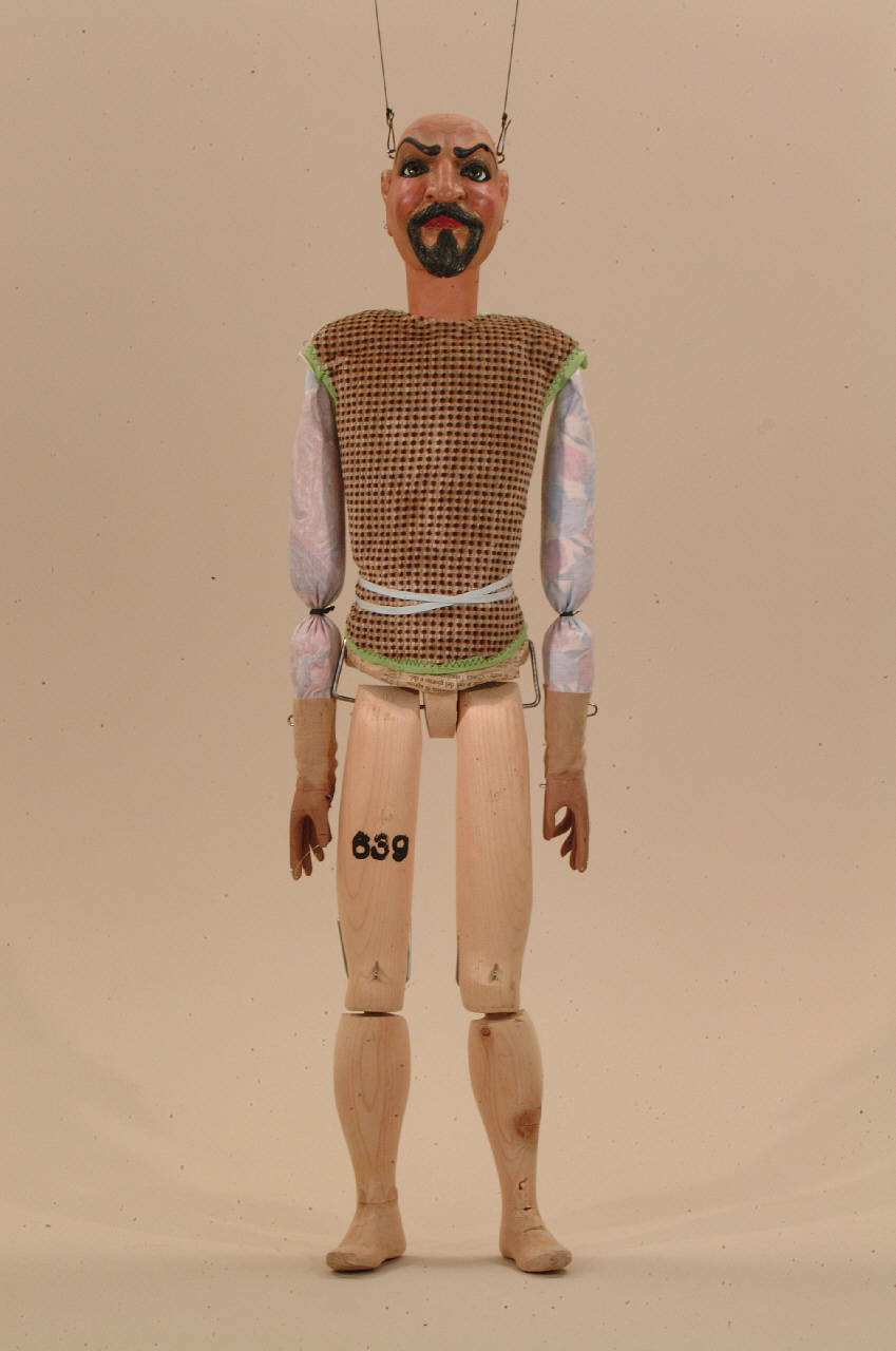 Corpo grande tagliato in vita a incastro; testa con bocca e occhi fissi; mani mobili con dita separate; piedi fissi con piombatura; bilancino originale a croce metodo Holden