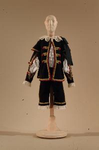 Costume per usciere del 1600 composto da pantaloni, giacca, camicia, nastro con fiocco