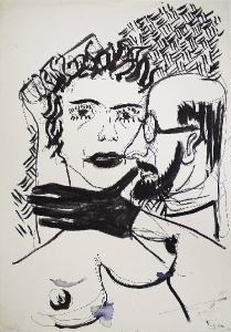 Gli amanti. Figura femminile nuda e figura maschile con guanti