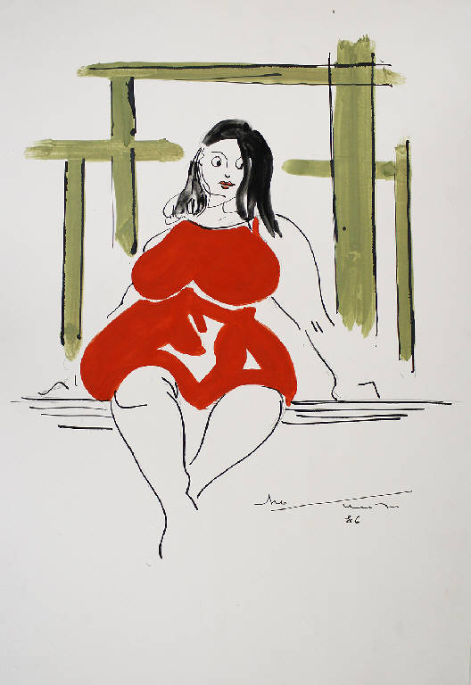 Vestito rosso. Figura femminile seduta