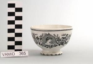 - NOTIZIE STORICO CRITICHE La ciotola è decorata con transfer nero con figure di profilo e motivi vari, applicato sottosmalto. La manifattura francese di Luneville vanta una tradizione importante fin dal Settecento. Nel corso del secolo successivo si adattò alla crescente richiesta di stoviglie di uso anche quotidiano producendo terraglie con l'impiego della tecnica del tranfer print, ovvero dell'impiego di decalcomanie da applicare sulla ceramica in cottura prima della smaltatura.