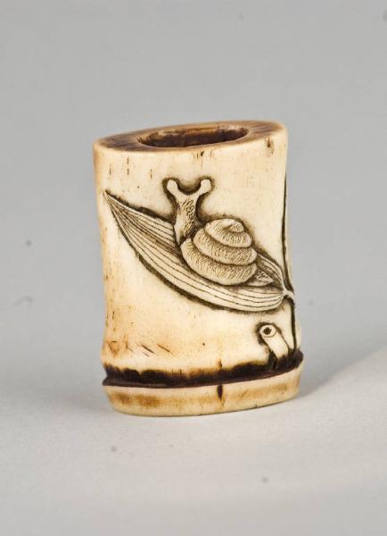 Lumaca su foglia di bambù. ANIMALE e PIANTA