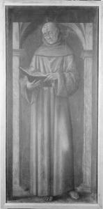 - NOTIZIE STORICO CRITICHE L'opera, a destinazione pubblica, proviene dalla biblioteca del Convento di San Francesco di Crema. In passato il Santo francescano è stato identificato con San Francesco d'Assisi o Sant'Antonio da Padova. Il dipinto è citato da M. Caffi nel 1883 che scrive: "San Francesco che legge, figura intiera; tempera molto sofferta ed annerita, con marca". Giovanna Brambilla Ranise in "La raccolta dimezzata. Storia della dispersione della pinacoteca di Guglielmo Lochis (1789-1859)" riporta come data di acquisizone alla collezione Lochis il 1848.