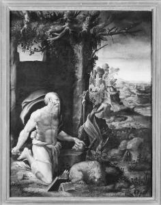 - NOTIZIE STORICO CRITICHE Opera sacra a destinazione probabilmente privata. La figura del San Girolamo è molto simile a quella presente in una incisione a bulino del Beatricetto