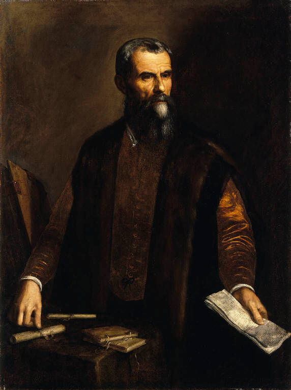 - NOTIZIE STORICO CRITICHE Opera profana a destinazione privata. Il personaggio ritratto era stato identificato genericamente come un giureconsulto. Affine stilisticamente al "Ritratto di un Martinengo Cesaresco" di Girolamo Romanino, conservato alla Pinacoteca di Brera.