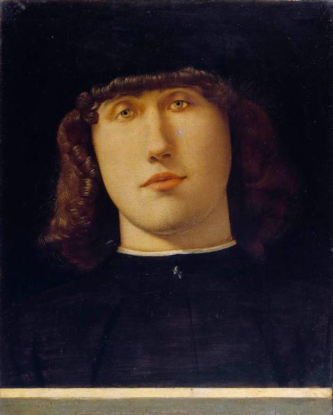 - NOTIZIE STORICO CRITICHE Opera profana e destinazione privata. Il soggetto venne già ritenuto un ritratto giovanile del vescovo Bernardo de' Rossi. Il supporto, molto sottile, è in rovere di Slavonia. I caratteri (o meglio le tracce) dell'iscrizione ritenuta non originale posta sul parapetto sono irregolari, disposti in linea obliqua e associati a rosette a punzone. Al verso della tavola ci sono delle marezzature. Il riferimento a Lorenzo Lotto risale a G. Frizzoni (1907).