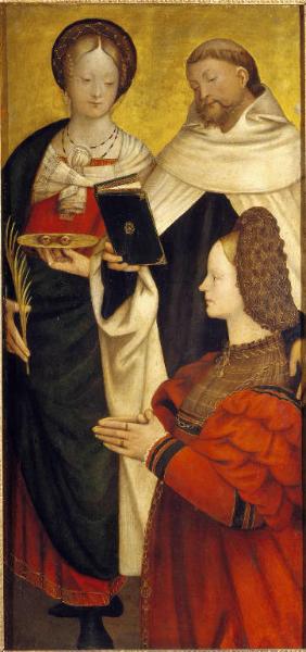 - NOTIZIE STORICO CRITICHE L'opera, sacra a destinazione pubblica, costituisce lo scomparto destro del "Trittico della Madonna". Gli altri due scomparti sono: "Madonna col Bambino" (Bergamo, Accademia Carrara, num. inv. 81LC00160) e "San Michele Arcangelo, una Santa ed un devoto" (Bergamo, Accademia Carrara, num. inv. 81LC00160). La firma dell'autore è presente sullo scomparto centrale ("Madonna con Bambino"). Giovanna Brambilla Ranise in "La raccolta dimezzata. Storia della dispersione della pinacoteca di Guglielmo Lochis (1789-1859)" riporta come data di acquisizione alla collezione Lochis il 1833 (ante).