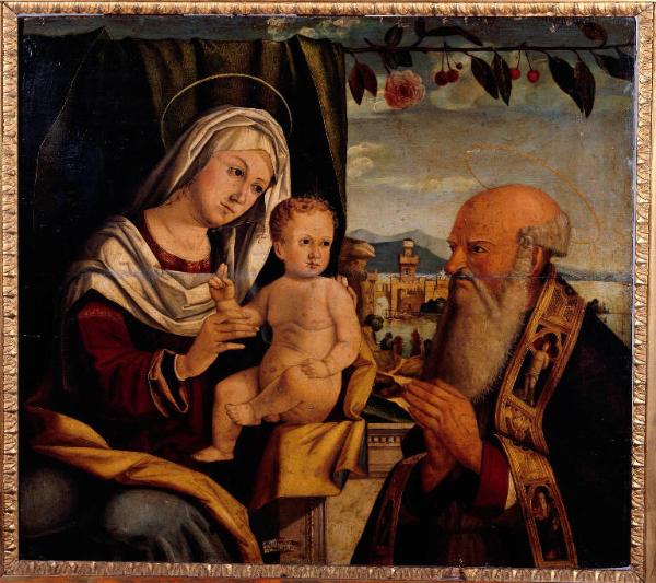- NOTIZIE STORICO CRITICHE Opera sacra a destinazione privata. Il supporto è costituito da due tavole. L'opera fu acquistata da Lochis presso il mercante Antonio Sanquirico a Venezia nel 1843. Il veneziano Federico Della Rovere fece realizzare l'incisione del dipinto e ne fece dono al proprietario dell'opera nel 1843 circa. Il dipinto della Carrara è replica del dipinto dell'Accademia Albertina di Torino: entrambi sono copie di un dipinto di un dipinto di analogo soggetto pubblicato dal Berenson negli Indici (1958) con l'attribuzione a Pasqualino di Niccolò e assegnato in seguito dal Coletti a Girolamo di Bernardino da Udine (Attardi).