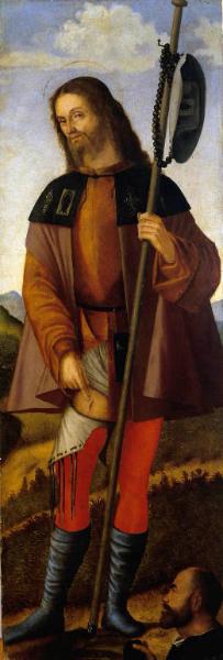 - NOTIZIE STORICO CRITICHE Si tratta dello scomparto laterale destro inferiore del "Polittico di Santa Fosca". Gli altri scomparti sono: "San Sabastiano" (Zagabria, Galleria Nazionale Strossmeyer), "San Pietro Martire" (Venezia, Museo Correr, num. inv. 2177), "San Paolo" (già Venezia, già Chiesa di Santa Fosca), "San Cristoforo" (già Venezia, già Chiesa di Santa Fosca) e "Madonna col Bambino" (già Venezia, già Chiesa di Santa Fosca). La firma dell'autore è presente sull'opera conservata al museo Correr. La tavola nel XIX secolo venne rimossa dalla chiesa di S. Fosca.
