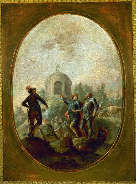 - NOTIZIE STORICO CRITICHE Si tratta del bozzetto per il soffitto dipinto della Sala d'ingresso della Galleria Carrara, andato distrutto nel primo decennio del XIX secolo a causa dell'ampiamento dell'edificio. L'opera, rintracciata sul mercato antiquario romano, è stata donata dal International Inner Wheel Club Bergamo.