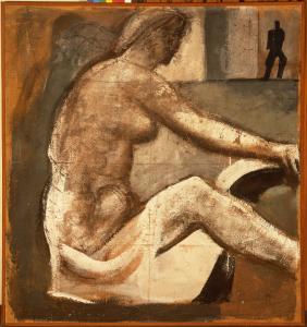 - NOTIZIE STORICO CRITICHE L'opera rimase nello studio di Sironi fino alla sua morte, quando passò alla figlia Aglae. Questo cartone si collega quasi certamente al progetto per il grande affresco raffigurante l'"Italia tra le Arti e le Scienze", eseguito nel 1935 da Sironi nell'Aula Magna dell'Università di Roma "La Sapienza". E' evidente infatti la vicinanza stilistica con due figure nel cartone intitolato "Pomona" e con un piccolo bozzetto, entrambi relativi alla composizione del lunettone di sinistra, trasformata dall'artista in corso d'opera. Nel periodo postbellico il monumentale affresco venne 'epurato' dei simboli fascisti e irrimediabilmente snaturato. Nel Manifesto della Pittura Murale del 1933, di cui fu il principale ispiratore insieme a Carrà, Sironi espresse la sua alta considerazione dell'affresco e della grande decorazione in generale, che avevano, rispetto alla pittura da cavalletto, un più forte significato sociale essendo destinate al pubblico e non al privato. L'arte doveva tornare a farsi interprete di valori comuni e ad avere una funzione educatrice della popolazione. Il tema delle arti e dei mestieri è un leit motivi di tutta la produzione sironiana di opere monumentali, che ha la sua massima espressione tra la fine degli anni Venti e l'inizio degli anni Quaranta e che vede l'affermazione dello stile neo-primitivo con forme solide, massicce e semplificate in riferimento ai modelli di Giotto e Masaccio. In collaborazione con l'architetto razionalista Marcello Piacentini scaturiscono le più significative opere della Grande Decorazione di Sironi, tra cui l'Aula Magna del Rettorato della nuova Città Universitaria di Roma.