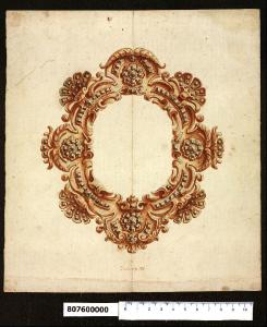 - NOTIZIE STORICO CRITICHE Nell'"Indice" del tomo nel quale il marchese Giacomo Sardini lo aveva rilegato il disegno viene definito, insieme ad altri tre fogli: Ornati per giojelli ad uso di regali che si fanno dai Sovrani agl'Imbasciatori".\nLe montature progettate, probabilmente cornici in oro per ritratto, rivelano assonanze con opere di Ambrogio Giannoni, massese attivo anche a Lucca dagli anni venti del Seicento (C. Baracchini, in Le botteghe degli argentieri lucchesi del XVIII secolo, Firenze, 1981, pp. 49-51; A. Capitanio, Arte orafa e Controriforma, Livorno, 2001, p. 75), dopo una formazione a Roma. Nell'Urbe aveva lavorato con gli argentieri Girolamo Cona, Pietro Gentile e Benedetto Cacciatore (C. G. Bulgari, Argentieri gemmari e orafi d'Italia, Roma, parte I, 1980, p. 524): proprio l'opera nota di quest'ultimo, l'urna-reliquiario di san Tommaso da Canterbury in Santa Maria Maggiore (S. Vasco Rocca, Gli argenti di S. Maria Maggiore: reliquiari di Pietro Gentili, Benedetto Cacciatore, Santi Lotti e della bottega di Vincenzo I Belli, in "Storia dell'arte" 47/49 1983, pp. 117-125), può far luce sulle proposte formali dell'ambiente dal quale Giannoni aveva assorbito gli elementi linguistici peculiari del suo fare fastoso e scultoreo.\nNon si conoscono disegni autografi di Giannoni e pertanto si preferisce orientare l'attribuzione dei disegni in esame all'ambito della bottega. Infatti sembra che Giannoni usasse avvalersi di aiuti, come tramanda la letteratura artistica a proposito della realizzazione di parti della corona del Volto Santo di Lucca (C. Baracchini, in Il Volto Santo storia e culto, Lucca, 1982, p. 84 n. 10; Capitanio, 1986, pp. 83-85). Inoltre sono state avanzate ipotesi riguardo al possibile ruolo di Girolamo Scaglia come disegnatore progettista dei manufatti di Giannoni (M. Burresi, in Le botteghe degli argentieri lucchesi del XVIII secolo, Firenze, 1981, pp. 392-394). Tuttavia i disegni per pisside riferiti allo Scaglia sembrano appunti stesi a posteriori come promemoria di bottega piuttosto che elaborati preparatori e pertanto si preferisce evitare di accostare al suo nome i progetti della Collezione Sardini Martinelli.\nPer orientare la datazione non è utile il riferimento al 1620, anno vergato su un frammento applicato a uno di essi (Milano, Collezione Sardini Martinelli inv. 8,77), quanto piuttosto l'utilizzo di una incisione di Agostino Mitelli pubblicata anteriormente al 1642 come spunto per la creazione del gioiello più scultoreo (ibidem inv. 8, 79).\nNel disegno in esame è delineato un monile dalla luce ovale impreziosito, secondo quanto recita la legenda, da 150 diamanti; le pietre, di piccola caratura, sono distribuite a decorare un'alternanza di palmette e rosette stilizzate.