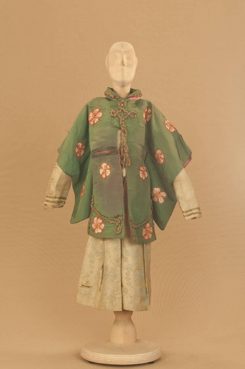 - NOTIZIE STORICO CRITICHE Costume realizzato per Il ballo "Excelsior", spettacolo che fu rappresentato la prima volta a Milano, al Teatro alla Scala, la sera dell'11 gennaio 1881. Autore del libretto e della coreografia era Luigi Manzotti, mentre Romualdo Marengo lo era della musica e Alfredo Edel delle scene e dei costumi.\nIl successo del ballo fu travolgente. Le repliche furono 103 nella stagione.\nLa versione marionettistica per la Compagnia Carlo Colla e Figli in due tempi e undici quadri fu allestita da Carlo II Colla col consenso dell'autore e presentata col titolo di "Civiltà e Progresso" nel 1895. Il titolo mutò poi nel tempo. Il primo allestimento del ballo ricordava ancora troppo l'originale scaligero. Ma fu sufficiente che lo spettacolo entrasse nella routine degli spostamenti della Compagnia perché le peculiarità del teatro marionettistico diventassero preponderanti.\nCosì l'"Excelsior" approdò al Teatro Gerolamo di Milano, quando la Compagnia ci entrò stabilmente nel 1906, proprio negli anni in cui, dopo qualche ultima apparizione, il "ballo grande" italiano, simbolico-narrativo sta tramontando sulle scene europee, divenendo unico retaggio del teatro delle marionette e, più particolarmente, della Compagnia Carlo Colla e Figli che ha continuato a riproporlo sino ad oggi, offrendo al pubblico di un secolo dopo la più vivida testimonianza del kolossal scaligero. Da nota scritta a matita sul "Giro Piazze della Compagnia Carlo Colla e Figli 1883-1912" si evince che la prima rappresentazione del ballo "Excelsior" è stata fatta a Caluso (TO) nel 1895.
