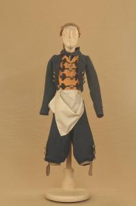 Costume da popolano composto da pantaloni, giacca, panciotto, nastro, reticella e grembiule.