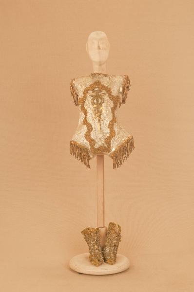 - NOTIZIE STORICO CRITICHE Il costume, realizzato per Il ballo "Excelsior" rappresentato la prima volta a Milano, al Teatro alla Scala, la sera dell'11 gennaio 1881, è stato rifatto in parte da Eugenio Monti Colla in occasione dell'andata in scena nel 1977 al Teatro Sociale di Como. Il tessuto della giacca e dei pantaloni, in origine di colore marrone, è stato tolto e sostituito con l'attuale mussola di lana blu. Autore del libretto e della coreografia è Luigi Manzotti, mentre Romualdo Marengo lo è della musica e Alfredo Edel delle scene e dei costumi.\nIl successo del ballo fu travolgente. Le repliche furono 103 nella stagione.\nLa versione marionettistica per la Compagnia Carlo Colla e Figli in due tempi e undici quadri fu allestita da Carlo II Colla col consenso dell'autore e presentata col titolo di "Civiltà e Progresso" nel 1895. Il titolo mutò poi nel tempo. Il primo allestimento del ballo ricordava ancora troppo l'originale scaligero. Ma fu sufficiente che lo spettacolo entrasse nella routine degli spostamenti della Compagnia perché le peculiarità del teatro marionettistico diventassero preponderanti.\nCosì l'"Excelsior" approdò al Teatro Gerolamo di Milano, quando la Compagnia ci entrò stabilmente nel 1906, proprio negli anni in cui, dopo qualche ultima apparizione, il "ballo grande" italiano, simbolico-narrativo sta tramontando sulle scene europee, divenendo unico retaggio del teatro delle marionette e, più particolarmente, della Compagnia Carlo Colla e Figli che ha continuato a riproporlo sino ad oggi, offrendo al pubblico di un secolo dopo la più vivida testimonianza del kolossal scaligero. Da nota scritta a matita sul "Giro Piazze della Compagnia Carlo Colla e Figli 1883-1912" si evince che la prima rappresentazione del ballo "Excelsior" è stata fatta a Caluso (TO) nel 1895.