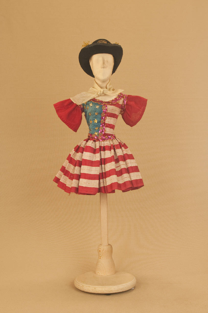 Costume fantastico da ballerina composto da veste, fazzoletto da collo e cappello.