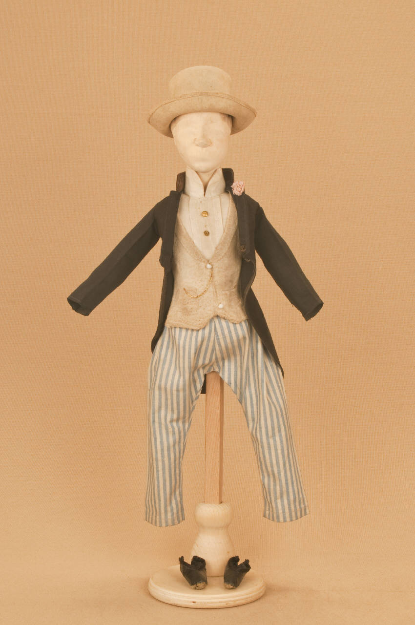 Costume borghese da bambino composto da pantaloni, frac, davantino, panciotto e scarpe. Si completa con un cappello che ha il codice C 08062.