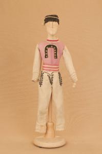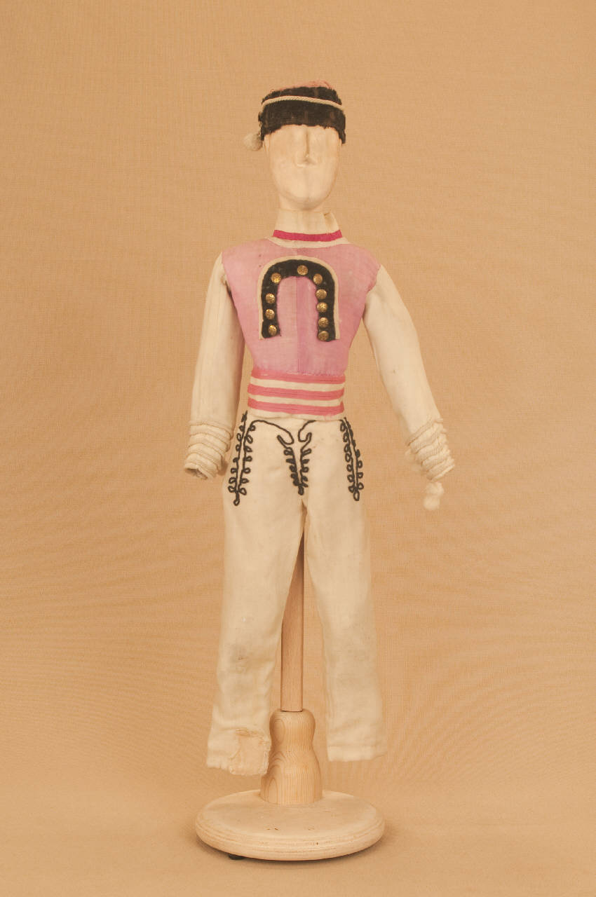 - NOTIZIE STORICO CRITICHE Costume realizzato per Il ballo "Excelsior", spettacolo che fu rappresentato la prima volta a Milano, al Teatro alla Scala, la sera dell'11 gennaio 1881. Autore del libretto e della coreografia era Luigi Manzotti, mentre Romualdo Marengo lo era della musica e Alfredo Edel delle scene e dei costumi.\nIl successo del ballo fu travolgente. Le repliche furono 103 nella stagione.\nLa versione marionettistica per la Compagnia Carlo Colla e Figli in due tempi e undici quadri fu allestita da Carlo II Colla col consenso dell'autore e presentata col titolo di "Civiltà e Progresso" nel 1895. Il titolo mutò poi nel tempo. Il primo allestimento del ballo ricordava ancora troppo l'originale scaligero. Ma fu sufficiente che lo spettacolo entrasse nella routine degli spostamenti della Compagnia perché le peculiarità del teatro marionettistico diventassero preponderanti.\nCosì l'"Excelsior" approdò al Teatro Gerolamo di Milano, quando la Compagnia ci entrò stabilmente nel 1906, proprio negli anni in cui, dopo qualche ultima apparizione, il "ballo grande" italiano, simbolico-narrativo sta tramontando sulle scene europee, divenendo unico retaggio del teatro delle marionette e, più particolarmente, della Compagnia Carlo Colla e Figli che ha continuato a riproporlo sino ad oggi, offrendo al pubblico di un secolo dopo la più vivida testimonianza del kolossal scaligero. Da nota scritta a matita sul "Giro Piazze della Compagnia Carlo Colla e Figli 1883-1912" si evince che la prima rappresentazione del ballo "Excelsior" è stata fatta a Caluso (TO) nel 1895.
