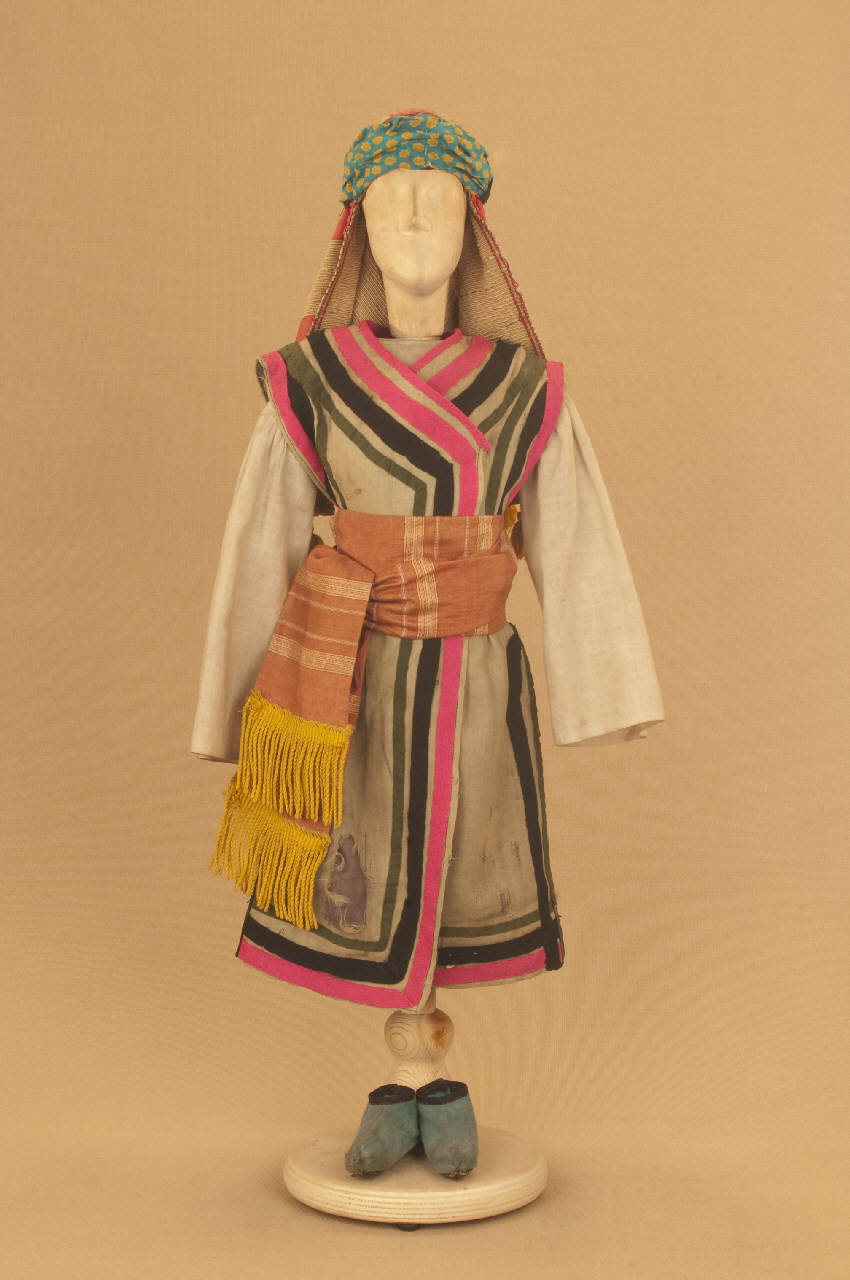 Costume folcloristico da uomo arabo composto da veste, tunica, fusciacca e scarpe. Si completa con un copricapo che ha il codice C 08019.