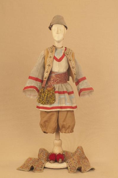 Costume folcloristico da uomo composto da pantaloni, veste, bolero, ghette, fusciacca e scarpe. Si completa con un cappello che ha il codice C 08035.