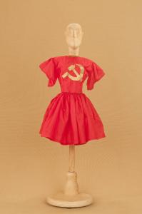 - NOTIZIE STORICO CRITICHE Costume realizzato nel 1951 per la ripresa al Teatro Gerolamo del ballo "Excelsior", spettacolo che fu rappresentato la prima volta a Milano, al Teatro alla Scala, la sera dell'11 gennaio 1881. Autore del libretto e della coreografia era Luigi Manzotti, mentre Romualdo Marengo lo era della musica e Alfredo Edel delle scene e dei costumi.\nIl successo del ballo fu travolgente. Le repliche furono 103 nel 1881.\nLa versione marionettistica per la Compagnia Carlo Colla e Figli in due tempi e undici quadri fu allestita da Carlo II Colla col consenso dell'autore e presentata col titolo di "Civiltà e Progresso" nel 1895. Il titolo mutò poi nel tempo. Il primo allestimento del ballo ricordava ancora troppo l'originale scaligero. Ma fu sufficiente che lo spettacolo entrasse nella routine degli spostamenti della Compagnia perché le peculiarità del teatro marionettistico diventassero preponderanti.\nCosì l'"Excelsior" approdò al Teatro Gerolamo di Milano, quando la Compagnia ci entrò stabilmente nel 1906, proprio negli anni in cui, dopo qualche ultima apparizione, il "ballo grande" italiano, simbolico-narrativo sta tramontando sulle scene europee, divenendo unico retaggio del teatro delle marionette e, più particolarmente, della Compagnia Carlo Colla e Figli che ha continuato a riproporlo sino ad oggi, offrendo al pubblico di un secolo dopo la più vivida testimonianza del kolossal scaligero. Da nota scritta a matita sul "Giro Piazze della Compagnia Carlo Colla e Figli 1883-1912" si evince che la prima rappresentazione del ballo "Excelsior" è stata fatta a Caluso (TO) nel 1895.