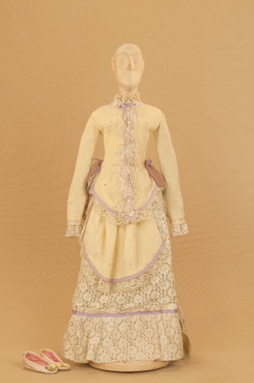 - NOTIZIE STORICO CRITICHE Costume realizzato in occasione del Festival di Spoleto del 1990 per il riallestimento del ballo "Excelsior", spettacolo che fu rappresentato la prima volta a Milano, al Teatro alla Scala, la sera dell'11 gennaio 1881. Autore del libretto e della coreografia è Luigi Manzotti, mentre Romualdo Marengo lo è della musica e Alfredo Edel delle scene e dei costumi.\nIl successo del ballo fu travolgente. Le repliche furono 103 nella stagione.\nLa versione marionettistica per la Compagnia Carlo Colla e Figli di questo in due tempi e undici quadri fu allestita da Carlo II Colla col consenso dell'autore e presentata col titolo di "Civiltà e Progresso" nel 1895. Il titolo mutò poi nel tempo. Il primo allestimento del ballo ricordava ancora troppo l'originale scaligero. Ma fu sufficiente che lo spettacolo entrasse nella routine degli spostamenti della Compagnia perché le peculiarità del teatro marionettistico diventassero preponderanti.\nCosì l'"Excelsior" approdò al Teatro Gerolamo di Milano, quando la Compagnia ci entrò stabilmente nel 1906, proprio negli anni in cui, dopo qualche ultima apparizione, il "ballo grande" italiano, simbolico-narrativo sta tramontando sulle scene europee, divenendo unico retaggio del teatro delle marionette e, più particolarmente, della Compagnia Carlo Colla e Figli che ha continuato a riproporlo sino ad oggi, offrendo al pubblico di un secolo dopo la più vivida testimonianza del kolossal scaligero. Da nota scritta a matita sul "Giro Piazze della Compagnia Carlo Colla e Figli 1883-1912" si evince che la prima rappresentazione del ballo "Excelsior" è stata fatta a Caluso (TO) nel 1895.