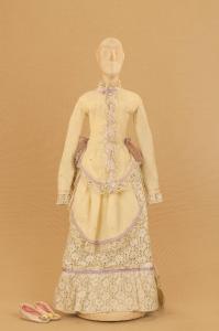 Costume da donna borghese composto da gonna, corpino, nastro montato a fiocco e scarpe. Si completa con un copricapo che ha il codice GOR 09863.