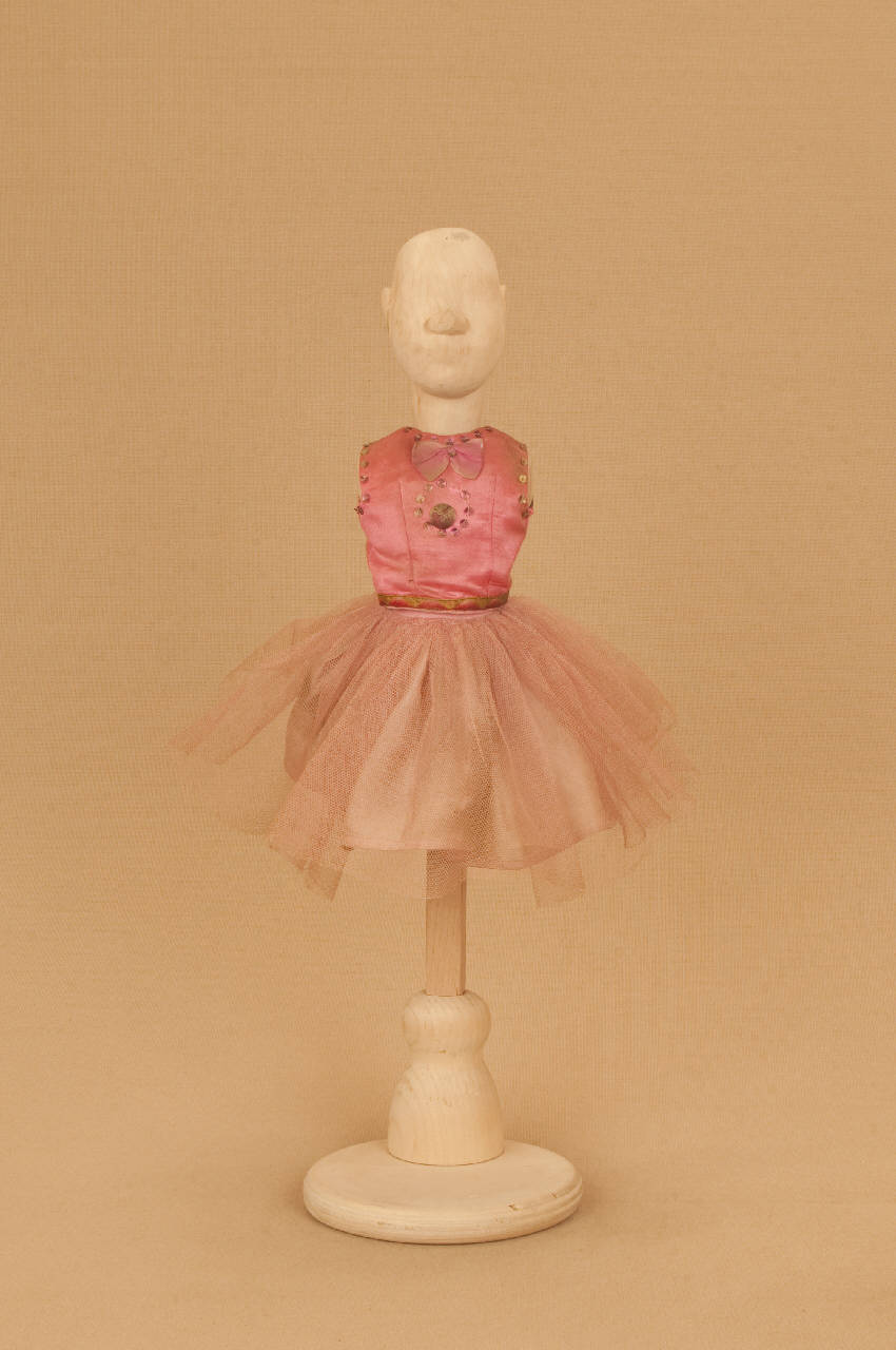- NOTIZIE STORICO CRITICHE Il costume, realizzato per Il ballo "Excelsior", spettacolo che fu rappresentato la prima volta a Milano, al Teatro alla Scala, la sera dell'11 gennaio 1881, è stato confezionato in due momenti diversi: il corpino, originale del 1926, confezionato dalla Sartoria Ardovino su bozzetto di Caramba, Il tutù realizzato nel 1970 da Angela Colla per il riallestimento dello spettacolo al Festival di Spoleto, utilizzando materiale proveniente dalla sartoria del Teatro alla Scala. A memoria di Eugenio Monti Colla gli abiti della prima edizione erano realizzati in "plumetis" di cotone giallo pallido, di cui oggi non esistono più tracce.\nAutore del libretto e della coreografia del ballo "Excelsior" era Luigi Manzotti, mentre Romualdo Marengo lo era della musica e Alfredo Edel delle scene e dei costumi.\nIl successo del ballo fu travolgente. Le repliche furono 103 nella stagione.\nLa versione marionettistica per la Compagnia Carlo Colla e Figli in due tempi e undici quadri fu allestita da Carlo II Colla col consenso dell'autore e presentata col titolo di "Civiltà e Progresso" nel 1895. Il titolo mutò poi nel tempo. Il primo allestimento del ballo ricordava ancora troppo l'originale scaligero. Ma fu sufficiente che lo spettacolo entrasse nella routine degli spostamenti della Compagnia perché le peculiarità del teatro marionettistico diventassero preponderanti.\nCosì l'"Excelsior" approdò al Teatro Gerolamo di Milano, quando la Compagnia ci entrò stabilmente nel 1906, proprio negli anni in cui, dopo qualche ultima apparizione, il "ballo grande" italiano, simbolico-narrativo sta tramontando sulle scene europee, divenendo unico retaggio del teatro delle marionette e, più particolarmente, della Compagnia Carlo Colla e Figli che ha continuato a riproporlo sino ad oggi, offrendo al pubblico di un secolo dopo la più vivida testimonianza del kolossal scaligero. Da nota scritta a matita sul "Giro Piazze della Compagnia Carlo Colla e Figli 1883-1912" si evince che la prima rappresentazione del ballo "Excelsior" è stata fatta a Caluso (TO) nel 1895.
