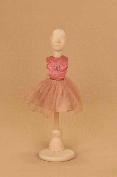 - NOTIZIE STORICO CRITICHE Il costume, realizzato per Il ballo "Excelsior", spettacolo che fu rappresentato la prima volta a Milano, al Teatro alla Scala, la sera dell'11 gennaio 1881, è stato confezionato in due momenti diversi: il corpino, originale del 1926, confezionato dalla Sartoria Ardovino su bozzetto di Caramba, Il tutù realizzato nel 1970 da Angela Colla per il riallestimento dello spettacolo al Festival di Spoleto, utilizzando materiale proveniente dalla sartoria del Teatro alla Scala. A memoria di Eugenio Monti Colla gli abiti della prima edizione erano realizzati in "plumetis" di cotone giallo pallido, di cui oggi non esistono più tracce.\nAutore del libretto e della coreografia del ballo "Excelsior" era Luigi Manzotti, mentre Romualdo Marengo lo era della musica e Alfredo Edel delle scene e dei costumi.\nIl successo del ballo fu travolgente. Le repliche furono 103 nella stagione.\nLa versione marionettistica per la Compagnia Carlo Colla e Figli in due tempi e undici quadri fu allestita da Carlo II Colla col consenso dell'autore e presentata col titolo di "Civiltà e Progresso" nel 1895. Il titolo mutò poi nel tempo. Il primo allestimento del ballo ricordava ancora troppo l'originale scaligero. Ma fu sufficiente che lo spettacolo entrasse nella routine degli spostamenti della Compagnia perché le peculiarità del teatro marionettistico diventassero preponderanti.\nCosì l'"Excelsior" approdò al Teatro Gerolamo di Milano, quando la Compagnia ci entrò stabilmente nel 1906, proprio negli anni in cui, dopo qualche ultima apparizione, il "ballo grande" italiano, simbolico-narrativo sta tramontando sulle scene europee, divenendo unico retaggio del teatro delle marionette e, più particolarmente, della Compagnia Carlo Colla e Figli che ha continuato a riproporlo sino ad oggi, offrendo al pubblico di un secolo dopo la più vivida testimonianza del kolossal scaligero. Da nota scritta a matita sul "Giro Piazze della Compagnia Carlo Colla e Figli 1883-1912" si evince che la prima rappresentazione del ballo "Excelsior" è stata fatta a Caluso (TO) nel 1895.