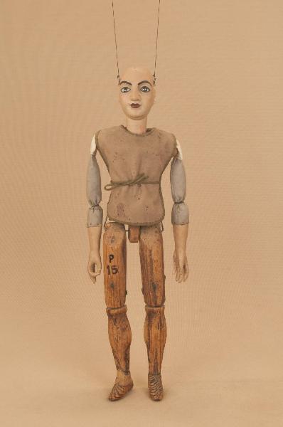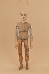 Testa in legno di tiglio fissata al corpo tramite ferro. Occhi di vetro. Bocca fissa. Corpo piccolo in abete. Gambe attaccate con ferro al bacino, ginocchia ad incastro. Mani in tiglio fisse con dita scolpite ma unite, pollice e indice sinistro uniti ad anello. Bilancino originale metodo Holden.