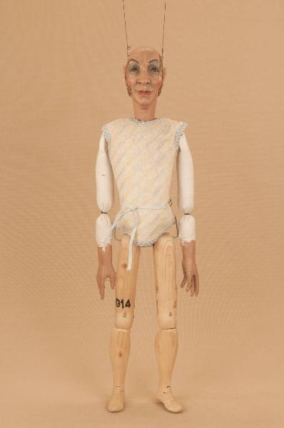 Testa di legno di tiglio fissata al corpo tramite ferro, occhi di vetro, bocca mobile. Corpo normale in abete, gambe unite al bacino tramite bordione in ferro, ginocchia ad incastro, mani mobili al polso con dita scolpite e separate, bilancino originale metodo Holden.