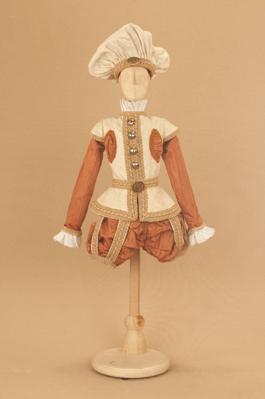 Livrea cinquecentesca da uomo composta da braghe, farsetto, cintura, calzamaglia, scarpe e cappello.
