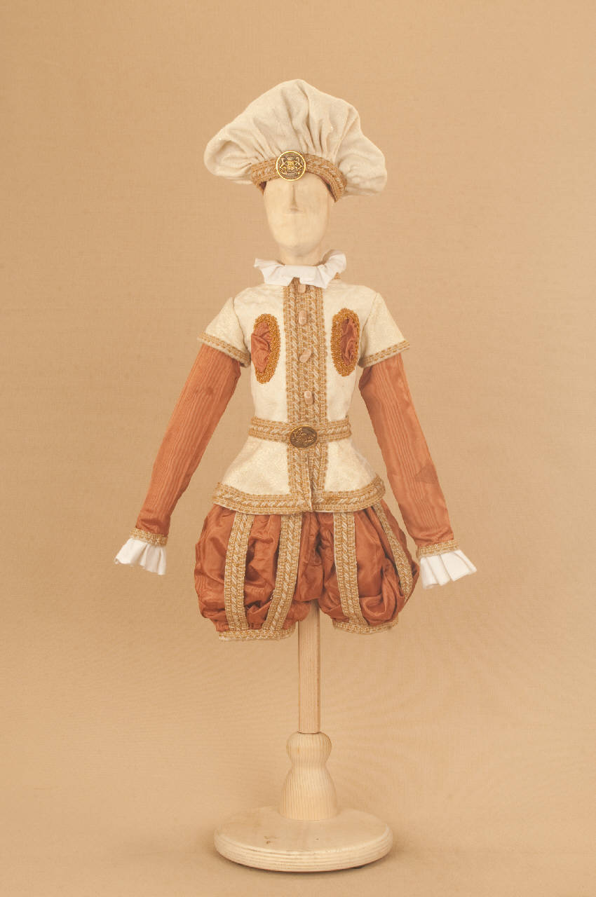 Livrea cinquecentesca da uomo composta da braghe, farsetto, cintura, calzamaglia, scarpe e cappello.