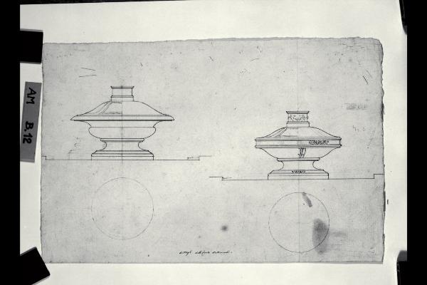 Pianta e prospetto di fonti battesimali. Pianta e prospetto di fonti battesimali