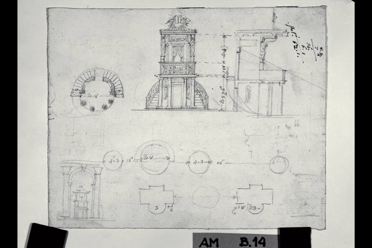 Pianta e prospetto di un pulpito. Pianta e prospetto di un pulpito