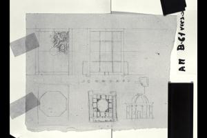 Pianta, prospetto ed elementi decorativi di un caffehaus. Pianta, prospetto ed elementi decorativi di un caffehaus